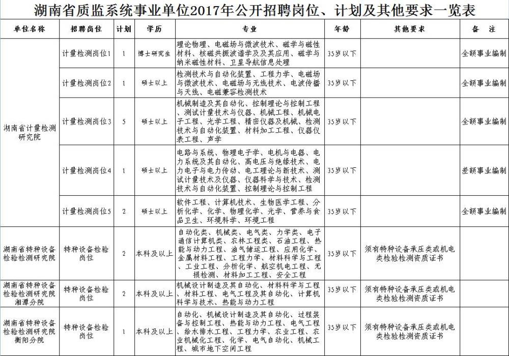 2017年湖南省质量技术监督局公开招聘38名工作人员