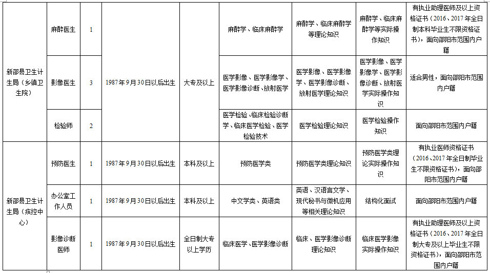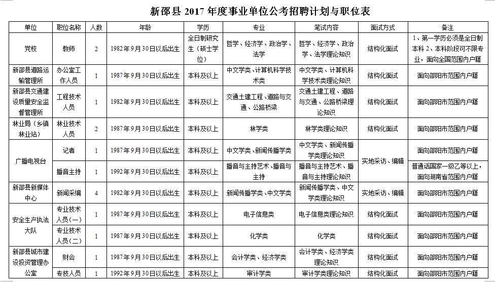 2017年邵阳新邵县事业单位公开招聘120名工作人员公告