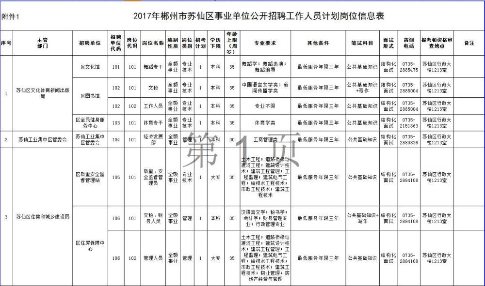 2017年郴州市苏仙区面向社会公开招聘事业单位工作人员49名。现公告如下: