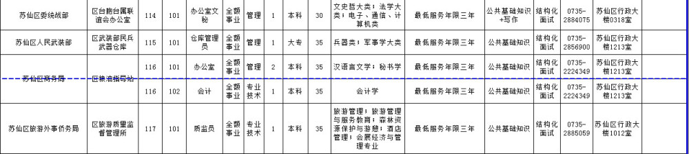 4.报名地点。苏仙区行政中心大楼0318、1012和1213室,各岗位报名地点详见附件1。(地址:郴州市苏仙区观山洞街道郴县路。市内乘59路公交车到苏仙区检察院下,沿桂园路走100米左右可达;市内乘13路、21路、22路、27路、36路公交车到高斯贝尔下,沿桂园路走500米左右可达。)