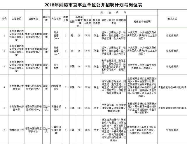 2018年湘潭市直事业单位公开招聘103名工作人员