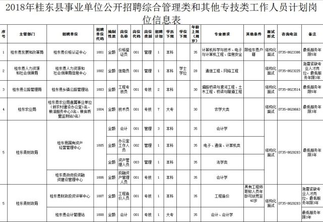 计划招聘综合管理类和其他专技类事业单位工作人员106名,具体招聘岗位、人数及资格条件等如下: