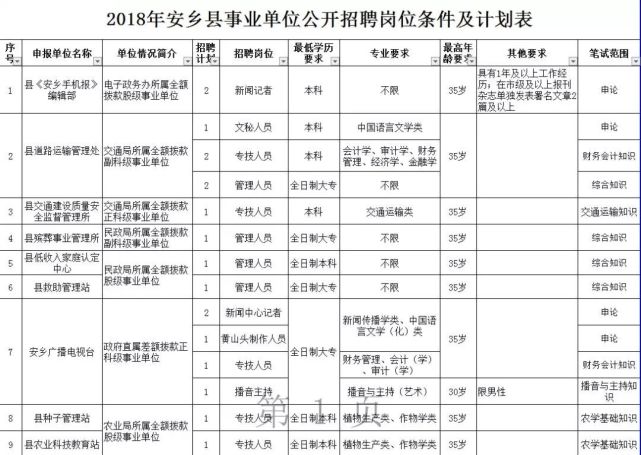 常德安乡县部分事业单位公开招聘314名工作人员