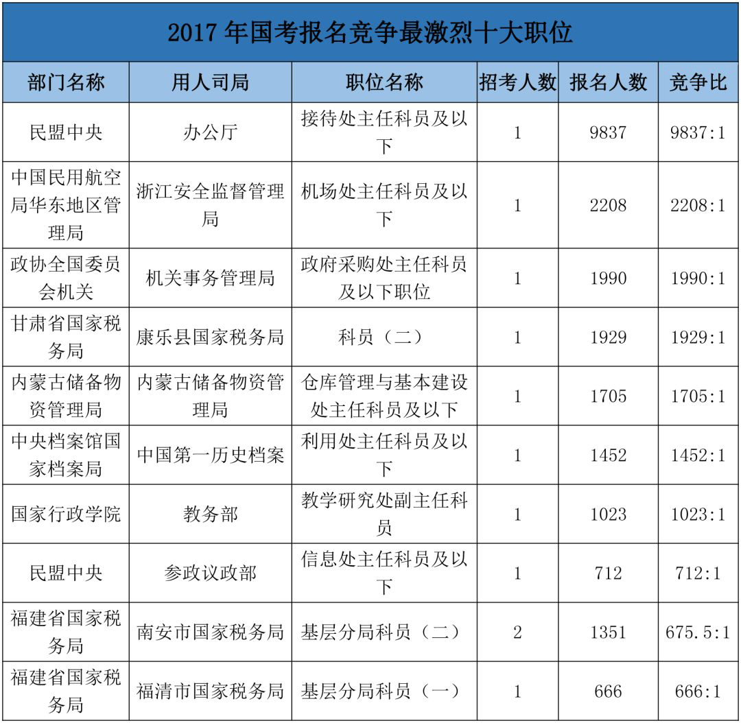 2017年民盟中央的职位以9837:1的竞争比拔得头筹。看到这竞争比真是瑟瑟发抖。